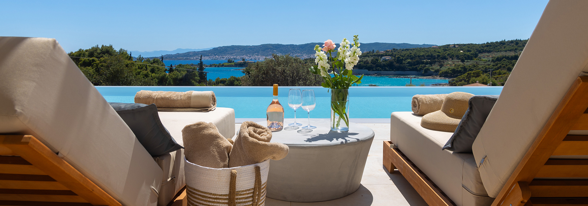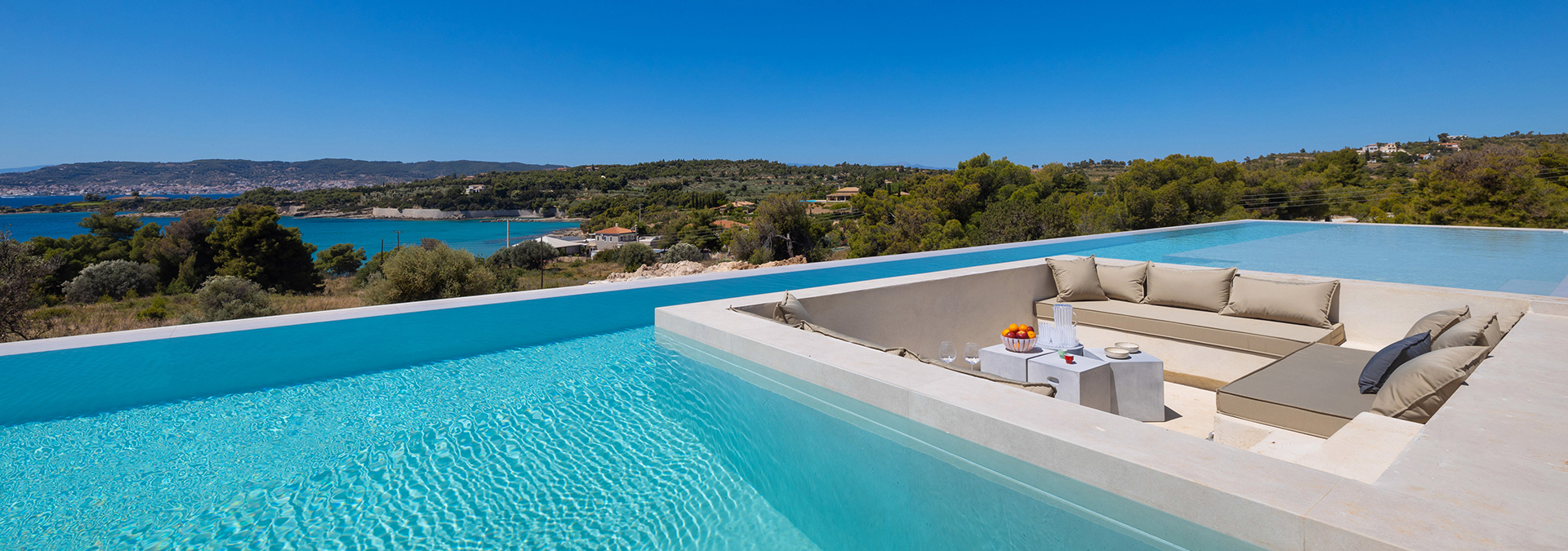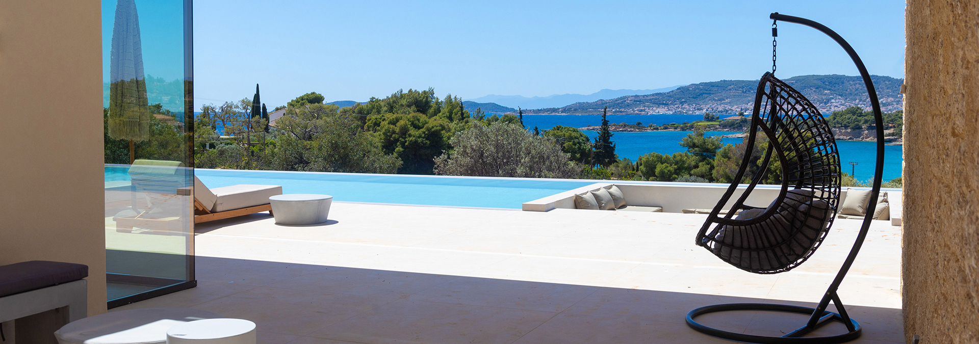 This magnificent villa offers breathtaking, unobstructed views of the sea and Spetses Island, creating an unparalleled amphitheatrical experience. The estate is comprised by three separate houses that create an entire mansion complex. It is suitable for residents that want to stay altogether and, at the same time, maintain privacy at will. The main house has an area of 360m2 and each of the guest houses have an area of 45m2.